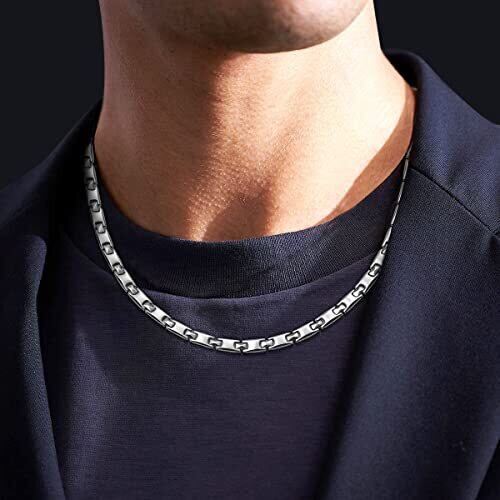 「ゲルマ・磁気ネックレス」★チェーンの内側には直径3.5mmの純度99.99%以上のゲルマニウム粒4個と磁力2000ガウスの永久磁石30個が埋め込まれています。ネックレスをつける時一斉に磁気が働き、知らないうちに首まわりが軽くなることが期待できます。 「金属アレルギー対応」★素材には肌にやさしい純チタン(99.5%)を採用しています。丈夫で軽く錆びにくいだけでなく、金属アレルギー性が極めて低い素材で、肌が敏感な方でも安心して着用いただけます。
