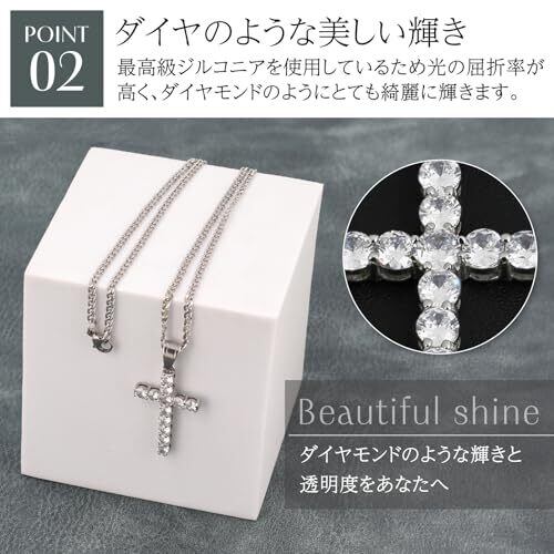 [La LibeModa] ネックレス ステンレス ジルコニア CZ 金属アレルギー性低 チェーン 十字架 クロス シルバー 銀色