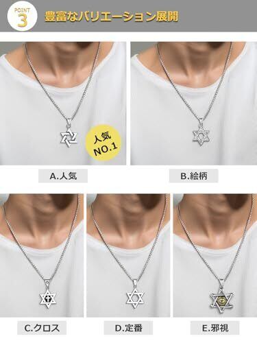 【幸運を呼び込む六芒星ネックレス】神秘的な力を持つとされる六芒星をモチーフにしたネックレス。古くから魔除け・浄化の力があるとされ、身に着ける方のエネルギーを清らかに整え、神聖なパワーを感じられます。幸運を引き寄せるお守りとしておすすめです。 【金属アレルギー対応&高い耐久性】サージカルステンレス製のため、金属アレルギーの方も安心してお使いいただけます。 優れた耐腐食性・耐変色性で、サビや傷、変色に強く、清潔な状態を長く保ちます。 ゴールド/ブラックのカラーバリエーションは高品質なメッキコーティング仕上げで、長期使用でも輝きをキープします。