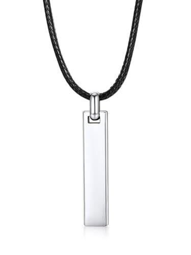 [PROSTEEL] プレート ネックレス ペンダント メンズ シンプル サージカルステンレス 金属アレルギー対応 付けっぱなし 長さ55cm 小豆チェーン/紐チェーン