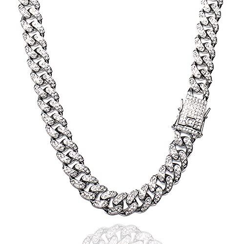 [Puente] キューバンネックレス 幅12mm 50cm マイアミキューバン ネックレス 喜平 チェーン 18k チェーンネックレス メンズ キューバンチェーン ジルコニア キューバンリンク 太目 ブリンブリン ヒップホップ 20インチ シルバー