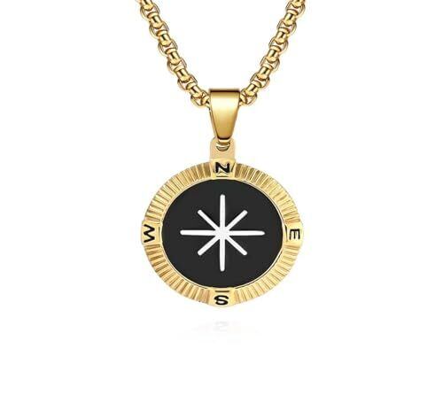 [FUANNA] ネックレスメンズブランドコンパスネックレス金属アレルギー対応サージステンレスコンパス北極星