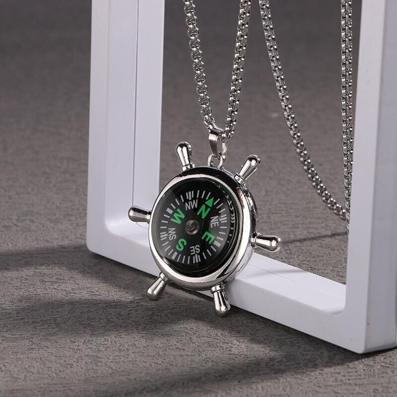 [Rockyu] ブランド 人気 ネックレス メンズ おしゃれ 船の舵 コンパス 羅針盤 デザイン 誕生日 プレゼント