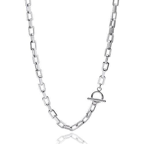 [Puente] 4サイズ マンテルネックレス チェーン 鎖 幅6.5mm × 50cm ステンレスネックレス マンテル アレルギー チェーンネックレス メンズ レディース シルバーネックレス メンズネックレス ステンレス シルバー 銀色 あずきチェーン (50cm(ブロックタイプ))