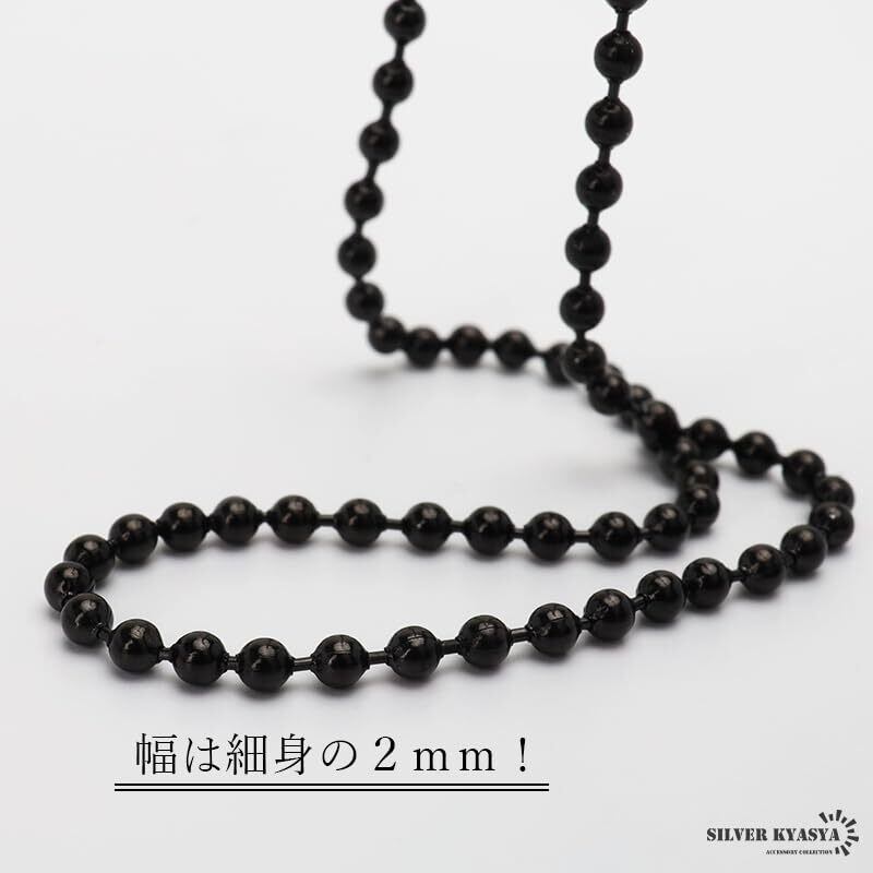 [silver KYASYA]ステンレス製 ボールチェーンネックレス シンプル ブラック 黒 幅2mm 細身 普段使い つけっぱなし プチプラ メンズ 男性 流行り 人気 金属アレルギー対応
