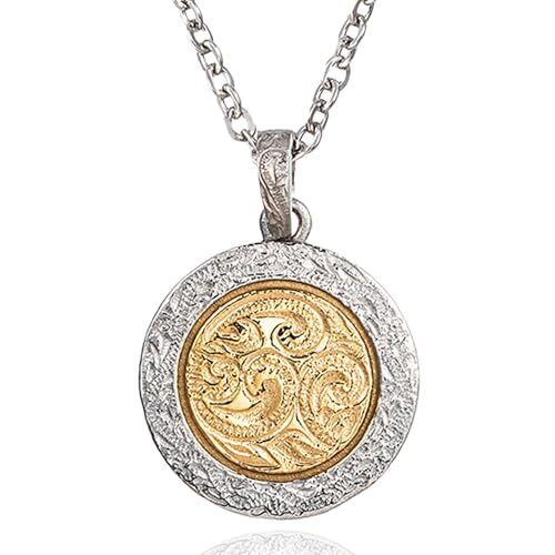 【ハワイアンジュエリー】 ネックレスのコインにハワイの文化や自然の要素にインスパイアされた伝統的なデザインが特徴です 精巧なスクロール(波ぶり)模様が施されたハワイアンジュエリーとコインネックレスとが融合したトレンドのデザインです。 【幸せを運ぶスクロール(波)模様】 スクロール模様には「目標に挑戦して乗り越える」「波に乗ってうまくいく」「この愛が永遠に途切れることなく続くように」という意味が込められており、成功のお守りや恋人とのペアジュエリーとしても人気が高いデザインです。