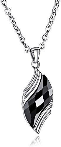 Rockyu ジュエリー 人気 ブランド ネックレス シンプル レディース メンズ 長め チタン 葉 ペンダント オニキス サファイア 男女兼用 (Black)