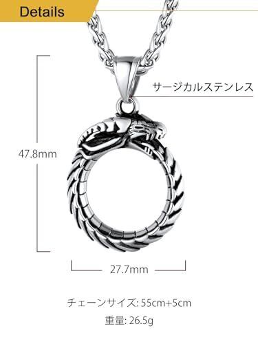 優れた龍デザイン:シンプルで着用しやすいデザイン、派手過ぎず、地味過ぎない、ちょうど良い存在感が魅力のリングネックレスです。普段使いでもフォーマルでも大活躍する、人気のメンズ ネックレスです。 伝説上の神獣である龍は、風水では「気」そのものと見なされる重要な存在です。龍を身近に置くことで、邪気を払い、気の流れを良くし、運気が向上するといわれています 健康と安全とかをお守ります 着脱簡単:カニカンの留め具は金属アレルギーの反応が出にくい点が特徴です。また、耐食性が高く非常に硬い金属ですのでさびに強くお手入れが楽なアクセサリー素材だと言えます。留め具の外し方も簡単で軽く押しながらまわすとロックが解除され外れます。しっかりとロックされているので着用中に外れる心配もありません。