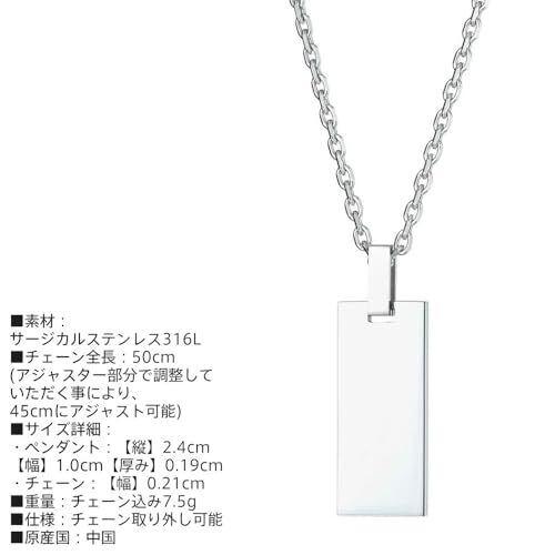 素材:サージカルステンレス316L サイズ詳細:・ペンダント:【縦】2.4cm【幅】1.0cm【厚み】0.19cm・チェーン:【幅】0.21cm チェーン全長:50cm(アジャスターを使用すると45cmに調節可能です) 仕様:チェーン取り外し可能、重量:チェーン込み7.5g ギフト包装仕様:リボン、アクセサリーギフトボックス、 「For you」メッセージカード付 付属品:ショッパー、アクセサリーポーチ、購入証明書