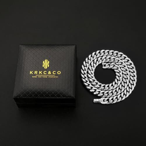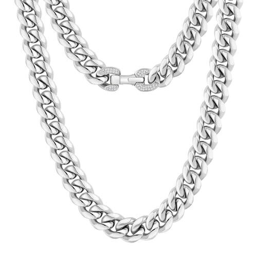KRKC&CO 喜平チェーン メンズネックレス 12mm ステンレス マイアミ キューバンチェーン ジルコニア付き 18金メッキ 男性 チョーカー 金属アレルギー対応 B系 ヒップホップ キラキラ アクセサリー