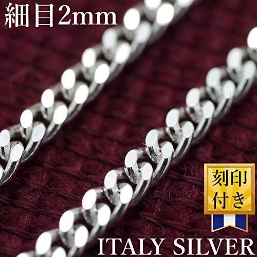 [シルバーワン] イタリア製 シルバー925 喜平ネックレス チェーン メンズ ge [白銀色 2面カット 幅2mm極細 厚1mm 長さ45cm 50cm]