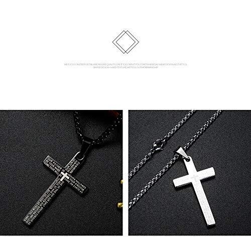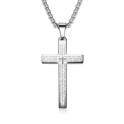 [Rockyu] 十字架 ネックレス シルバー メンズ チタン 経文 聖書 刻印 開運 お守り ペンダント 宗教 カッコいい 男性ネックレス アクセサリー 仕上げ