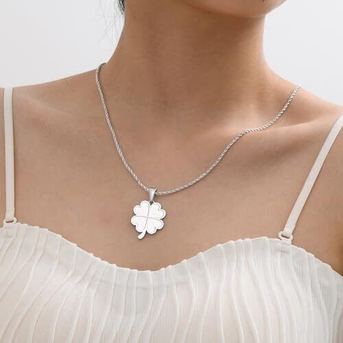 【幸運の四葉のクローバーネックレス】四葉のクローバーモチーフが施されたペンダントが、幸運を呼び込むアクセサリーです。 【Rockyu ネックレス 】四つ葉のクローバーネックレス ゴールドクローバーペンダント 素材: ステンレス。サイズ: ペンダント高さ29mm、幅23mm。チェーン長さ: 50cm。重量: 6g。 【使用場面】 結婚式、二次会、謝恩会、式典、お呼ばれ、パーティー。新年、クリスマス、誕生日、記念日、特別日、恋人、家族、友達に大切な方へのお贈り物にオススメです。