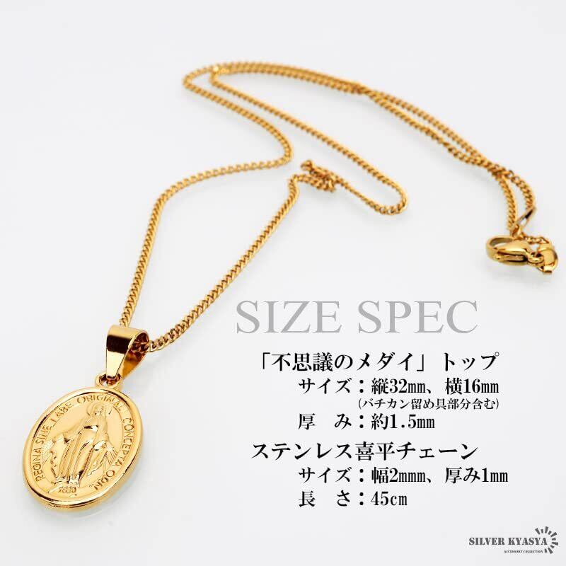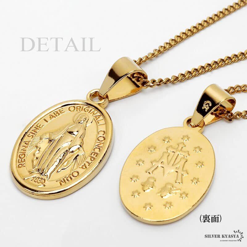 [silver KYASYA]ステンレス マリア コインネックレス 喜平チェーン 細身チェーン ゴールドチェーン ゴールド 不思議のメダイ お守り 聖母マリア 45cm