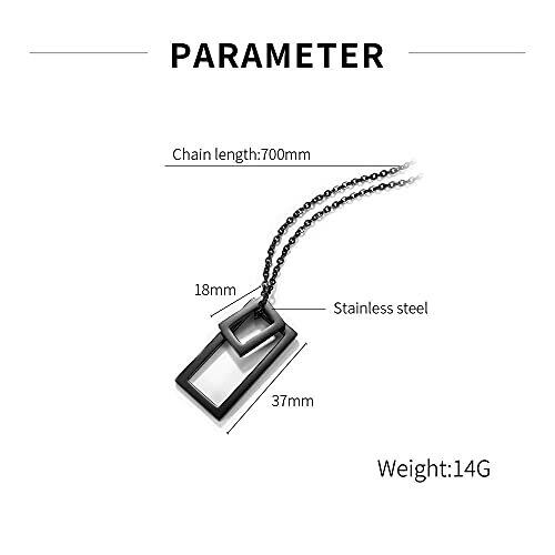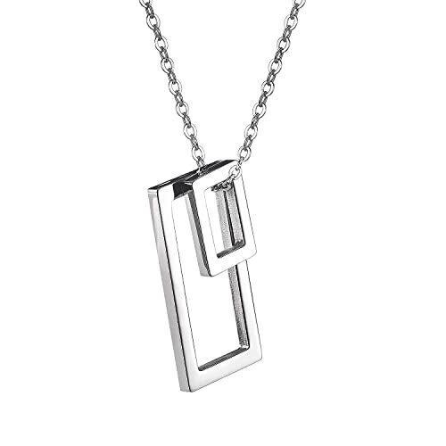 [Rockyu] ネックレス メンズ レディース シルバー シンプル ステンレス 長方形ネックレス 二連ペンダント パーティー プレゼント 誕生日 ファッション アクセサリー