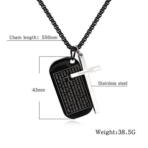 Rockyu 人気 ブランド ネックレス メンズ シルバー プレート 刻印 真言 十字架 クロス お守り おしゃれ