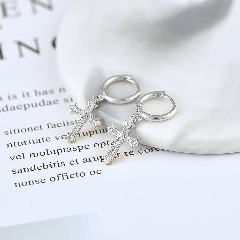 【お守りの十字架ピアス】クラシカルなクロスモチーフが祈りと守護を象徴し、大切な人との絆を深めるお守りジュエリーとして人気のデザインです。 【Rockyu ピアス】フープピアス レディース シルバークロス 人気 十字架 揺れるタイプで、S925銀針×ジルコニアの組み合わせ。サイズは内径9mm・チャーム15×11mm、重量は約2.4gで耳元に軽やかにフィットします。 【使用場面】小ぶりながらも輝きが印象的で、結婚式やデート、誕生日、日常のコーディネートなど、季節を問わず活躍するデザインです。特にフェミニンな装いと相性が良く、アクセントとしておすすめです。