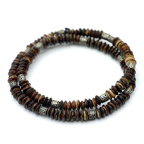 [シルバーワン] ココナッツの種 弾性サマー チョーカー ビーズ ネックレス メンズ [幅7mm/9mm 長45cm/50cm]