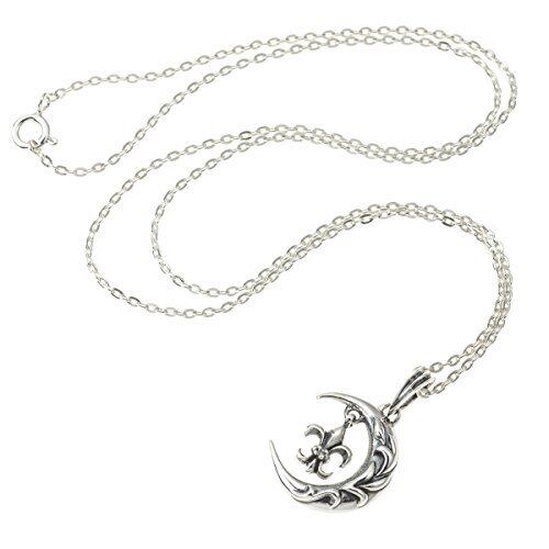 [石輝] 月にユリの紋章 フレア シルバー925 ネックレス キュービックジルコニア ムーン メンズ 袋付き[512svn]