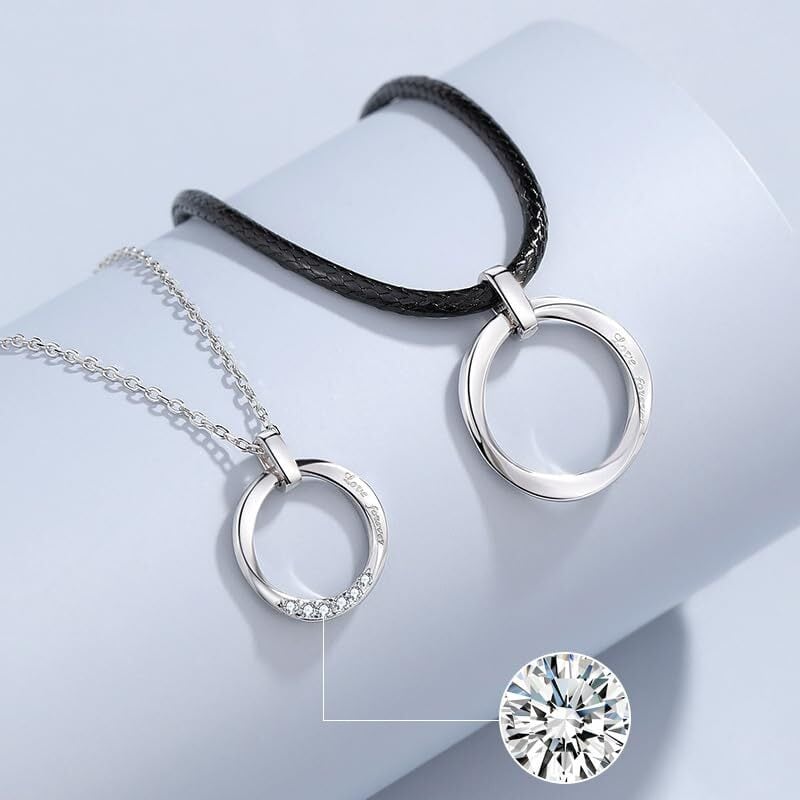 【ペアネックレス】シンプルなサークルデザインのペンダントは、メンズ用とレディース用のペアセットで、カップルに最適です。お互いの愛を象徴する刻印「Love Forever」が施されています。 【Rockyu ネックレス】ネックレス 革紐 メンズリングネックレス シルバー ステンレス 紐チェーン 60㎝ かっこいい 金属アレルギー対応 【カラー 】:シルバー【重量 】: 4g 【寸法 】:リングペンダントチェーン長さ:60cm ペンダント直径:32mm 【使用場面】 結婚式、二次会、謝恩会、式典、お呼ばれ、パーティー。新年、クリスマス、誕生日、記念日、特別日、恋人、家族、友達に大切な方へのお贈り物にオススメです。