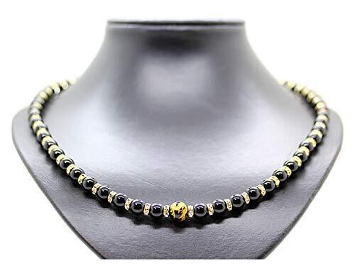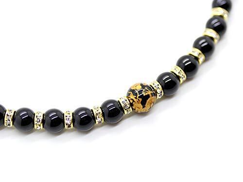 [石輝] 4A金彫皇龍オニキス10mm金ロンデル数珠ネックレス 354