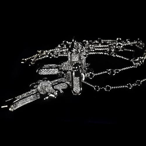 [Lucliss] ネックレス メンズ 鮮やかな輝き シャープな作り トリプルクロス ツイストチェーン ネックレス ジルコニア クロスネックレス