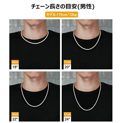 【存在感抜群の一品】幅4mmのCZダイヤストーンを100粒以上配置したラグジュアリーなテニスネックレスです。リッチな印象を与えるテニスチェーンは単体でも存在感抜群の一品。定番チェーンに物足りなさを感じている人にぜひお勧めです。 【手作業による爪留め】5A等級の大粒CZダイヤを使用することで、通常のテニスチェーンより輝きが増します。ストーンは1粒1粒ジュエラー職人による爪留めセッティングのため、光の当たり具合により輝きが魅力的に変化します。安価なのり付けの品物とは異なるラグジュアリー感に溢れています。