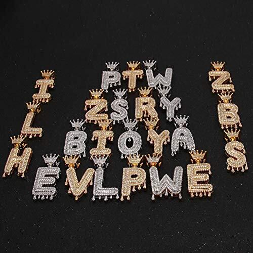 [Rockyu] イニシャル アルファベットペンダント ネックレス メンズ ゴールド ジルコニア 王冠 A-Zモチーフネックレス 男女兼用 ヒップホップ アクセサリー (A, ゴールド)