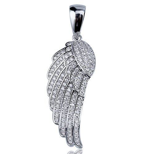 Rockyu メンズ レディース ネックレス ジルコニア キラキラ 輝く羽 翼ペンダント 人気 シルバー おしゃれ 天使の翼ネックレス 個性的 ファッション 男女兼用 ニューヨークスタイル ファッション プレゼント 贈り物 (シルバー)