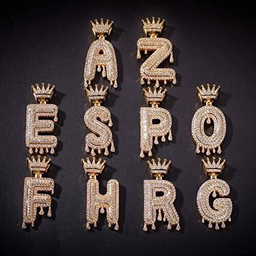 [Rockyu] イニシャル アルファベットペンダント ネックレス メンズ ゴールド ジルコニア 王冠 A-Zモチーフネックレス 男女兼用 ヒップホップ アクセサリー (Y, ゴールド)