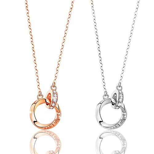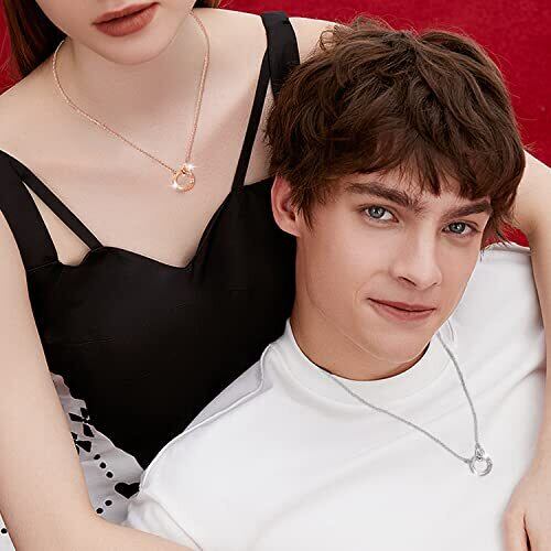 ★【高級 S925 ネックレス】材質:925シルバー。カラー:ローズゴールド、シルバー。男女兼用。 ペアネックレスのチェーン・リング部分には、軽くて傷つきにくく、水や汗にも强くて、金属アレルギーをお持ちの方にも安心してご着用いただけます。 ★【カップルネックレス】ネックレス2つ(シルバー、ローズゴールド)、高級ギフトボックスパッケージ。リングネックレス、きらめくダイヤモンド、自然光に照らされると輝きます,高級感を感じられます。カップル、親友、兄弟姉妹の感情の証です。