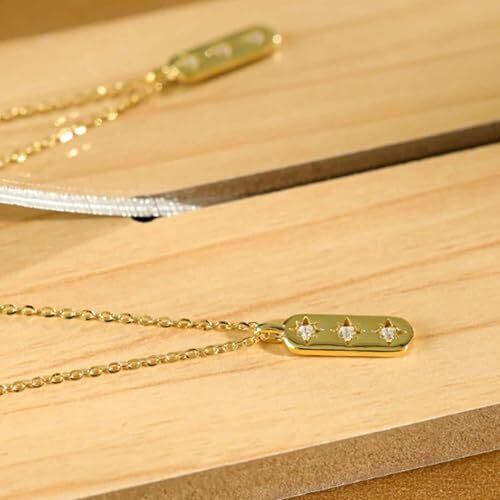 [#925sss] [公式] シルバー925 本物 ジルコニアダイヤ レクタングルバー スターバースト チャーム チェーン ネックレス ペンダント 高級 巾着付き[安心の30日返品品質保障]