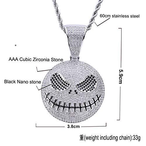 素材:AAAキュービック・ジルコニア (CZ) ホワイトゴールド 18金メッキ; ステンレス製チェーンの長さ:60㎝ ペンダントのサイズ約:59*38㎜ 重量:33g 輝きと高い硬度を誇るキュービックジルコニアを使用しております。本物のダイヤモンドのような輝きを持ちます。華やかなきらめきが魅力の大人気な髑髏ネックレスを演出する。 シンプル かっこいい かわいい おしゃれ クール カジュアル フォーマル などスタイル問わずにお選び頂けます。 落ち着いたデザインは年齢問わず 10代 20代 30代 40代 50代 60代 の方々にご愛用頂けます。記念日 などの 母の日 父の日 バレンタインデー ホワイトデー 誕生日 クリスマス 就職祝い 進学祝い 入学祝い 等の プレゼント ギフト にもピッタリです。