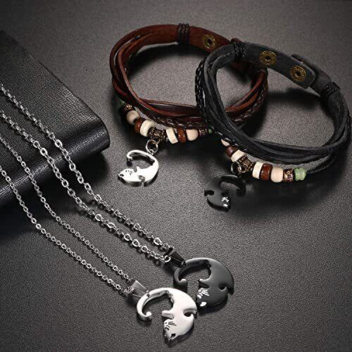 ネコをモチーフしてアンティークで存在感があるペアネックレス、レザー ペア ブレスレット 、カップルアクセサリー。 適用場合: 普段使い、通勤、通学、デード 、パーティー イベントなど活躍のシーンは様々です。 ご自用及び、誕生日、記念日、バレンタインデー、クリスマスなど親友、彼氏彼女へのプレゼント・ギフトお勧めです ①ペアブレスレット:9.05"(23cm)*0.39"(1cm) 調節可能 ネコペンダント0.78"(2cm)*0.67"(1.7cm) 重量(kg):110g ②ペアネックレス:メンズチェーン:21.65"(55cm)*0.11"(0.3cm) レディースチェーン:17.51"(44.5cm)*0.07"(0.2cm) ネコペンダント1.02"(2.6cm)*1.1"(2.8cm)