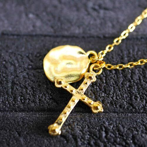 [#925sss] [公式] シルバー925 18K 本物 ハンマードコイン クロス チャーム チェーン ネックレス ペンダント 高級 巾着付き[安心の30日返品品質保障]