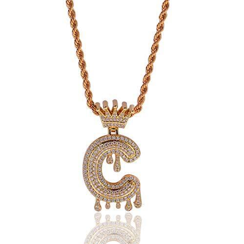 [Rockyu] イニシャル アルファベットペンダント ネックレス メンズ ゴールド ジルコニア 王冠 A-Zモチーフネックレス 男女兼用 ヒップホップ アクセサリー (H, ゴールド)