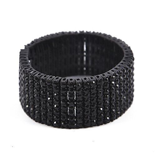 Rockyuブレスレット メンズ 人気 シルバー ゴールド 18金 ブラック ジルコニアチェーンネックレス 幅30㎜ 205㎜ 8列 AAACZダイヤ キラキラ 豪華 太目腕輪 誇張 カッコいい ヒップホップ風 (ブラック)