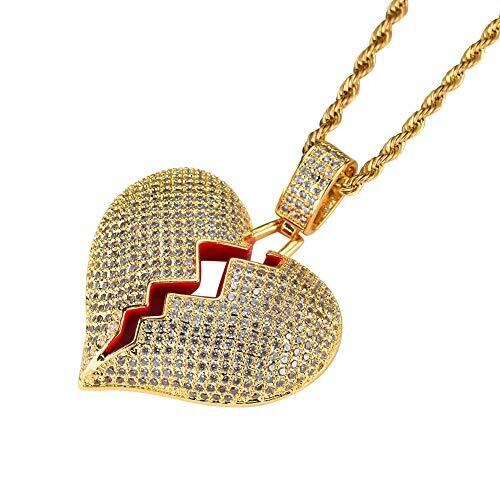 Necmメンズ ネックレス ジルコニア ゴールド 金 レッド 心形 ハートブレイク ハートペンダント 豪華 太目 男女兼用ネックレス カッコいい ヒップホップ風