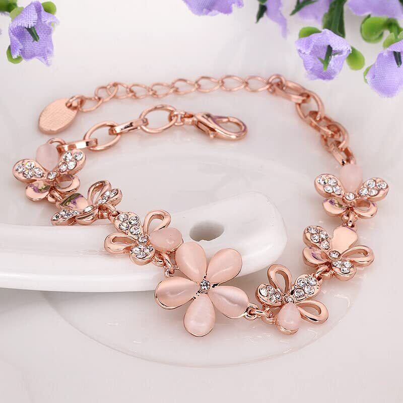 Rockyu ジュエリー ブランド 人気 ブレスレット レディース ワイルド ピンクゴールド 18k カラー 透明 ダイヤモンド バングル (花, ピンクゴールド) (桜)