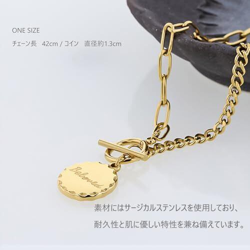 ■ サージカルステンレス素材 ※金属アレルギー対応 【チェーンサイズ】:全長 42cm+アジャスター5cm コイン直径約1.3cm 重さ:7.4g アクセントの効いたコインプレート&2種類チェーンネックレス 相違のあるコインプレート&2種類チェインネックレスが個性的でオシャレなデザイン。 さりげなくポイント映えするサイズで上品な顔映りに演出します。 ■サージカルステンレスとは もとは医療器具に使われていた最高級素材で、316Lステンレスのことを指し、 金属アレルギーが起こりにくい素材として人気を集めている素材です。 このサージカルステンレス(316Lステンレス)は、錆びにくいという特徴があります。