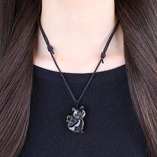 素材:ゴールデンオブシディアン(金曜石) ナイロンコード サイズ:38.5*26*10mmゴールデンオブシディアン 紐長さ調節可能40-70cm ゴールデンオブシディアンは物事の本質を見抜く力になってくれると言われています。「お仕事が順調に進むように」と願って送られるのもオススメです 猫ネックレスは愛らしさとエレガンスを兼ね備えたアクセサリーで猫好きの個性をさりげなく表現し、幸運の象徴としても人気です。普段使いから特別なシーンまで活躍します