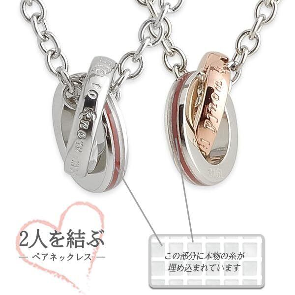 [L'AmoreEterno] ペアネックレス ふたりを結ぶ糸 選べる 2連リング ステンレス インフィニティ アクセサリー 無限大 ∞ 縁結び シルバー ローズゴールド ブルー【シルバー&ローズゴールド】