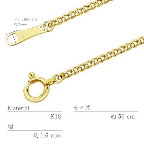 [ララクリスティー] 喜平 チェーン ネックレス ゴールド 18金 k18 幅 約 1.6mm 50cm 重量 約5.45g lc97-0073-yg-50
