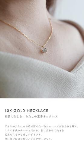 材質:K10 ゴールド , スーパーキュービックジルコニア サイズ:キュービック:直径約4mm チェーン:長さ:最大約45cm 長さ調節可能なスライド式チェーン 備考:詳しくご覧頂く為に拡大表示しています。サイズをご確認ください。 お客様のご覧になるモニターの環境などによって、実際の色と違って見える場合がございます。