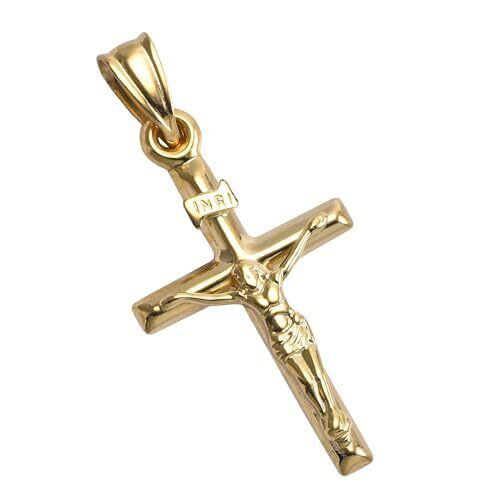 デザイン:K18 キリスト クロスペンダント トップ ユニセックス サイズ:S / 総重量:約1.1g / 素材:18金 イエローゴールド ( K18 ) 刻印入り トップ寸法 :縦約31mm (バチカン含む) 26mm (丸管のみ) トップ寸法:横約15mm 厚み約3mm バチカン金具内寸:縦5.8mm 横3mm 付属品:当店品質保証・ジュエリーケース / 注意事項:小ぶりなペンダントです。イメージと相違が無いか必ずサイズ詳細をご確認下さい。