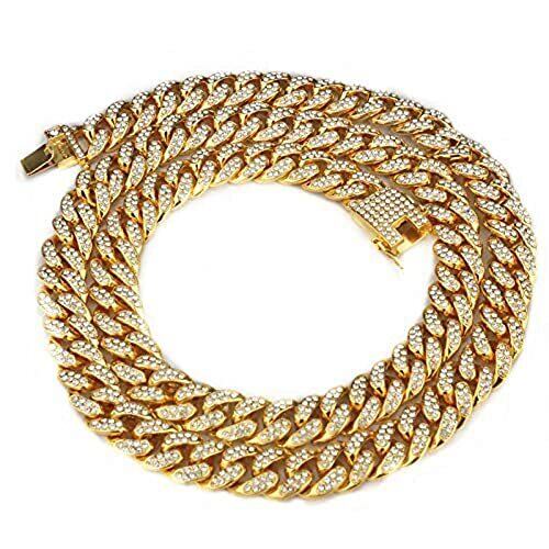 [Rockyu] ブランド ネックレス チェーン メンズ ゴールド 喜平 ネックレス チェーン マイアミ キューバリンク ジルコニア 18K金メッキ 太目 ヒップホップ カッコいい メンズネックレス パーティー ハロウィーン ファッション アクセサリー
