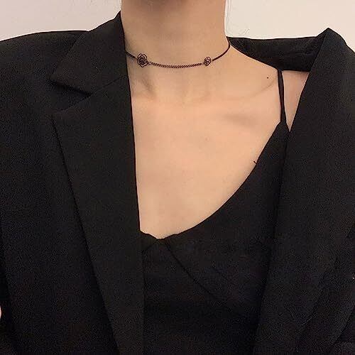[Deelfel] チョーカー レディース 黒 チョーカーリング バラチェーン 薔薇チョーカー 首輪 ファッション アクセサリー サイズ調整可能 誕生日 プレゼント アクセサリー