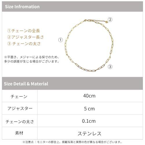 【華奢なチェーン】 細身のゴールドチェーンが首元を美しく見せ、女性らしさを引き立てます。 【高級感のある輝き】 上品なゴールドの光沢がコーディネートを格上げし、重ね付けにも最適です。 【デイリーやオフィスでも活躍】 シンプルで上品なデザインなので、休日のお出かけはもちろん、オフィススタイルやフォーマルな場でも違和感なくお使いいただけます。 【素材】 ステンレス製で、金属アレルギーが起きにくい素材を使用。汗や水にも強く、日常的に安心してお楽しみいただけます。※すべての方にアレルギーが起きないわけではございません。