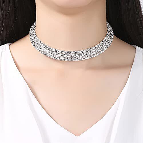 [LucBuy] ラインストーンチョーカーネックレス 4列ダイヤモンドネックレス、キラキラクリスタルネックレスジュエリー、ファッションブライドメイドブライダルウェディングパーティーウエディングネックレス女性用