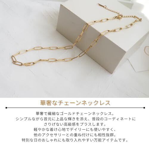 【華奢なチェーン】 細めのゴールドチェーンが首元を上品に彩る。軽やかで洗練された印象を与える万能アイテムです。 【洗練された大人のデコルテを演出】 きらめくゴールドの輝きがデコルテを美しく引き立て、シンプルながら女性らしい華やかさを添えます。 【デイリーやオフィスでも活躍】 シンプルで上品なデザインなので、休日のお出かけはもちろん、オフィススタイルやフォーマルな場でも違和感なくお使いいただけます。 【ギフトにも最適】 自分へのご褒美や、大切な人への誕生日、記念日、クリスマスなどの贈り物としてもおすすめ。上品な輝きが特別感を演出します。